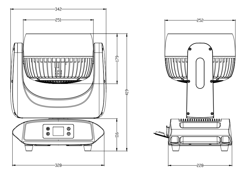 Waterproof 3-pin DMX input/output (5-pin DMX is available)(Seetronics optional)
